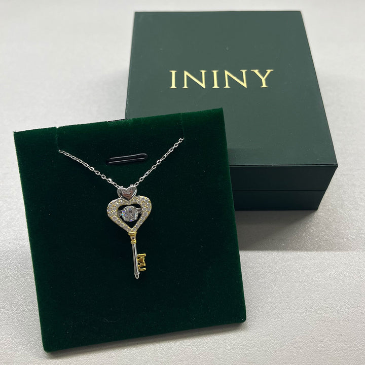 ININY Sterling Silver Heart Key Necklace and Bracelet Set In Two-Tone Plating