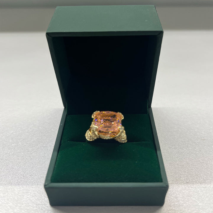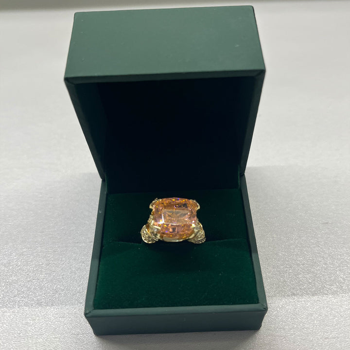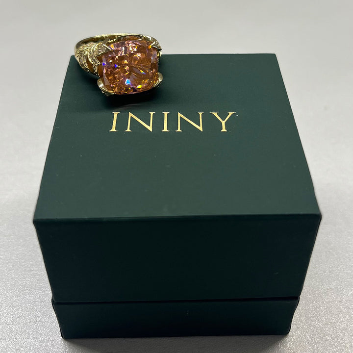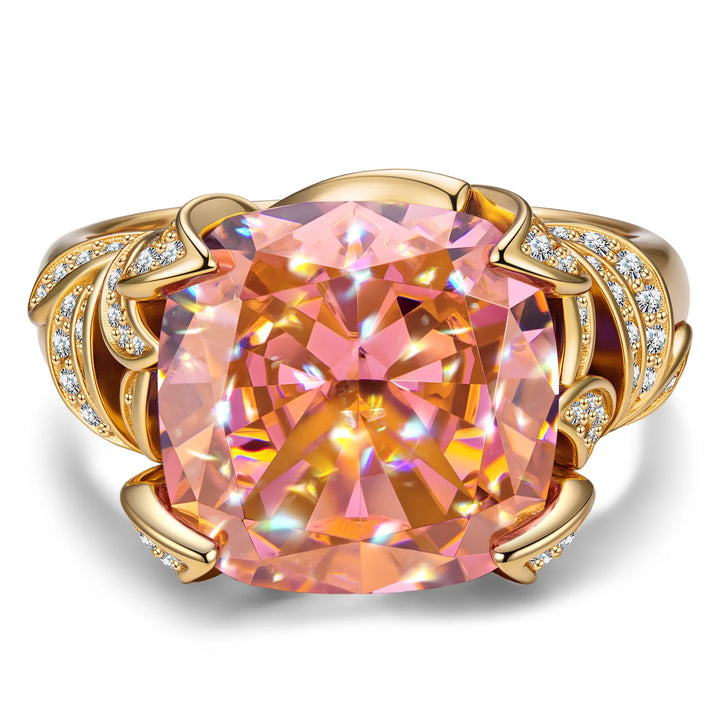 ININY Cushion Modified Brilliant Cut Padparadscha Sunset Glow Ice-Frosted Sparkle Lab Zircon - Pave Classic Engagement Ring 14K Yellow Gold Plated
