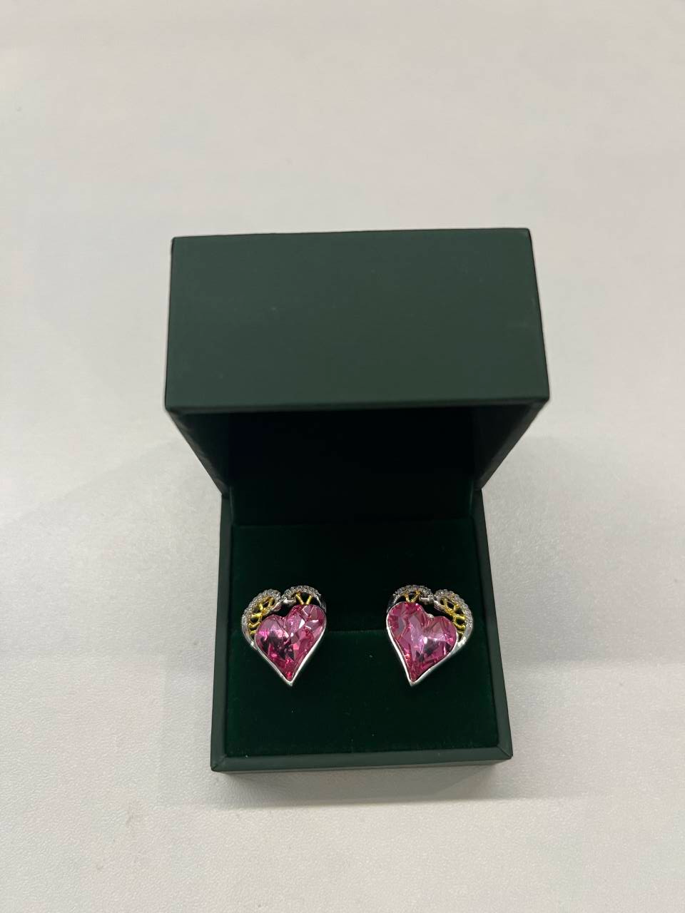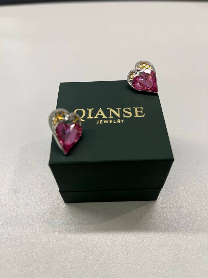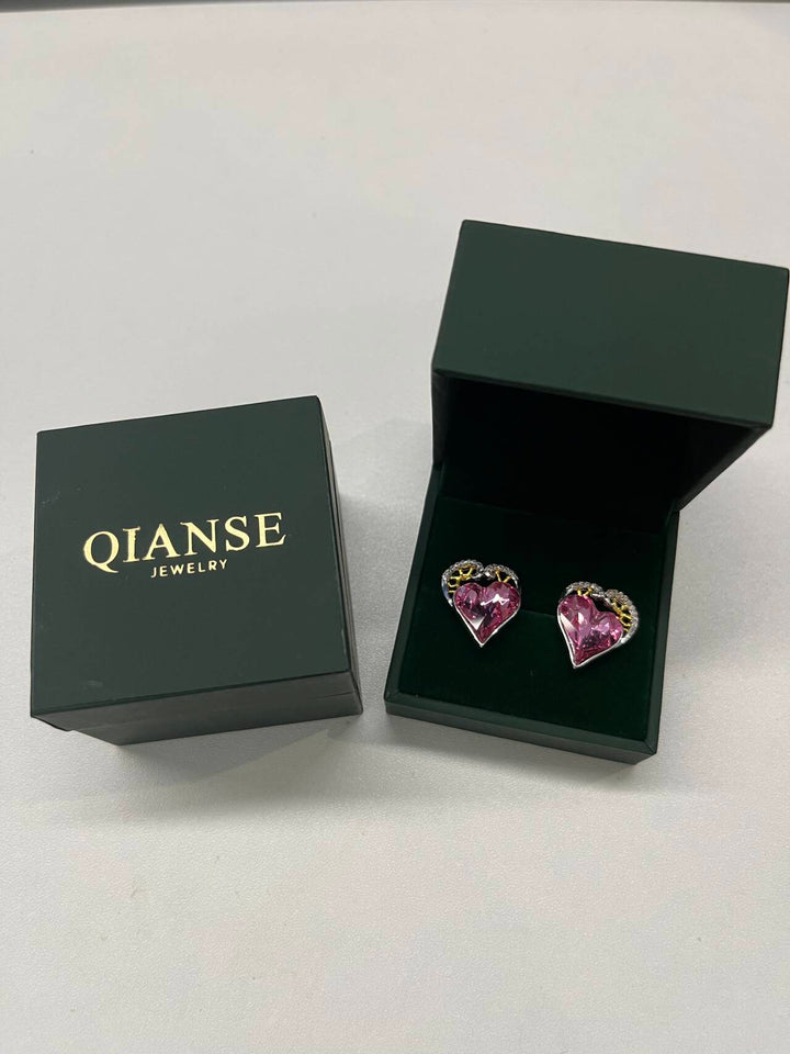 QIANSE JEWELRY Sterling Silver Enchanted Essence Heart Stud Earrings