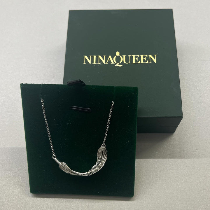 NINAQUEEN Sterling Silver Silver Leaf Necklace In White Gold Plated