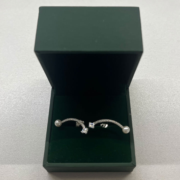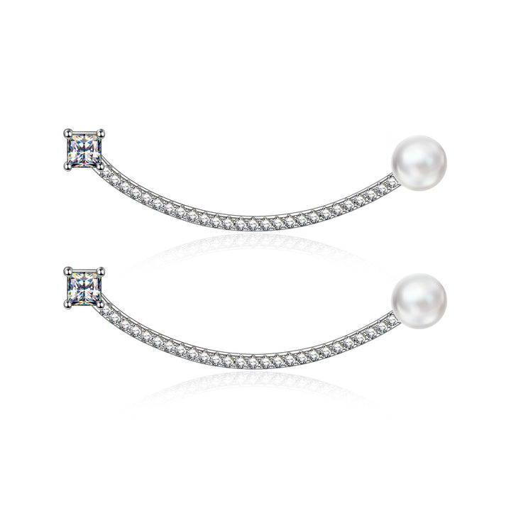 GONA JEWELRY Silver Timeless Elegance Earrings with Pearl and Diamond Accents