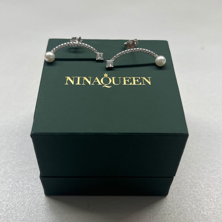 NINAQUEEN Silver Timeless Elegance Earrings with Pearl and Diamond Accents
